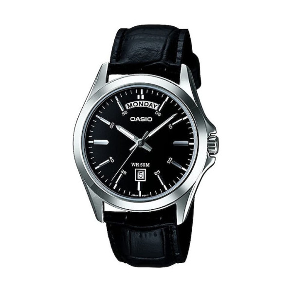 Το ρολόι Casio συνδυάζει άψογα στυλ και λειτουργικότητα. Το δερμάτινο λουρί του προσφέρει άνεση και κομψότητα, ιδανικό για καθημερινή χρήση. Το χρώμα του λουριού είναι μαύρο, προσδίδοντας του μία κλασική εμφάνιση.