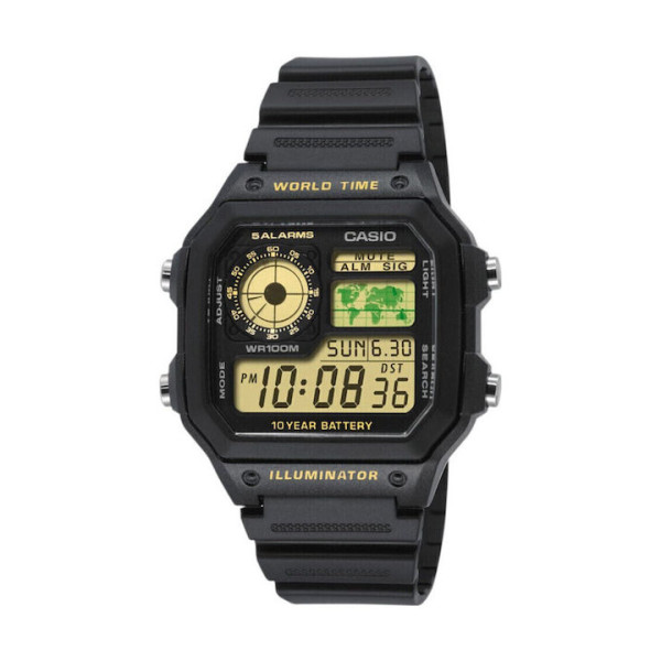Ανδρικό ψηφιακό ρολόι χρονογράφος της εταιρίας Casio, με καουτσούκ λουράκι σε μαύρο χρώμα. Διαθέτει μηχανισμό μπαταρίας, ο οποίος βασίζεται στην ηλεκτρική ενέργεια που παρέχει η μπαταρία, με αποτέλεσμα να υπάρχει ακρίβεια και αντοχή. Είναι ανθεκτικό στο νερό έως 100 μέτρα και είναι ιδανικό για κολύμπι (10 atm).
