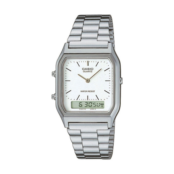 Casio Vintage Edgy Ρολόι Μπαταρίας με Ασημί Μεταλλικό Μπρασελέ AQ-230A-7DMQYES