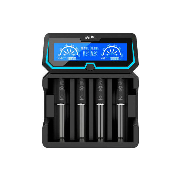 XTAR X4 φορτιστής μπαταριών με οθόνη LCD που εμφανίζει όλες τις πληροφορίες που χρειάζεστε. Λειτουργεί σαν power bank με USB επαφή, διαθέτει φόρτιση 3 σταδίων για προστασία της διάρκειας ζωής της μπαταρίας, και με ένα κλικ έχετε πρόσβαση σε όλες τις πληροφορίες φόρτισης.