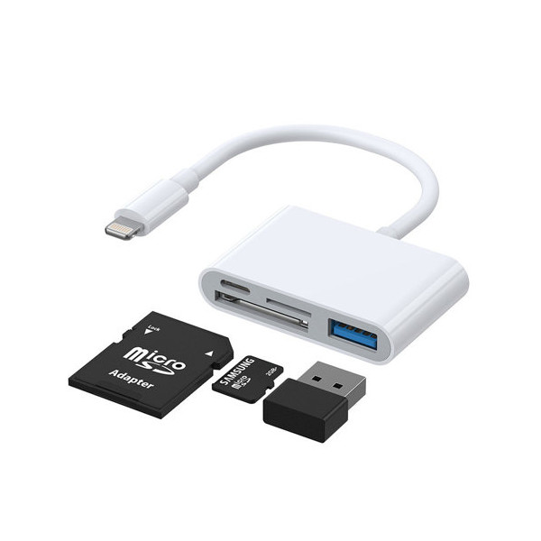 Προσαρμογέας Joyroom με συσκευή ανάγνωσης καρτών SD και TF, θύρα USB OTG και καλώδιο με υποδοχή Lightning - λευκό (S-H142)