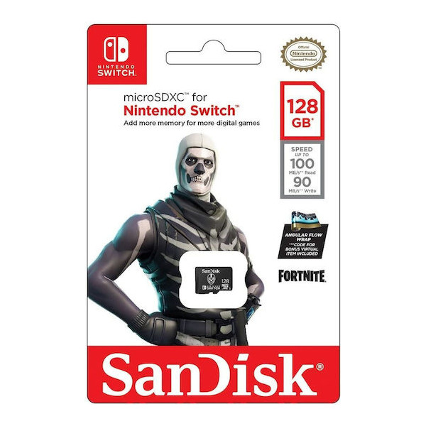 Η κάρτα μνήμης Switch Micro SDXC SanDisk 128GB Fortnite Skull Trooper είναι ένα εξαιρετικό αξεσουάρ για το Nintendo Switch ή smartphone. Με μεγάλη χωρητικότητα 128GB, προσφέρει αρκετό χώρο για την αποθήκευση εφαρμογών, φωτογραφιών και βίντεο.