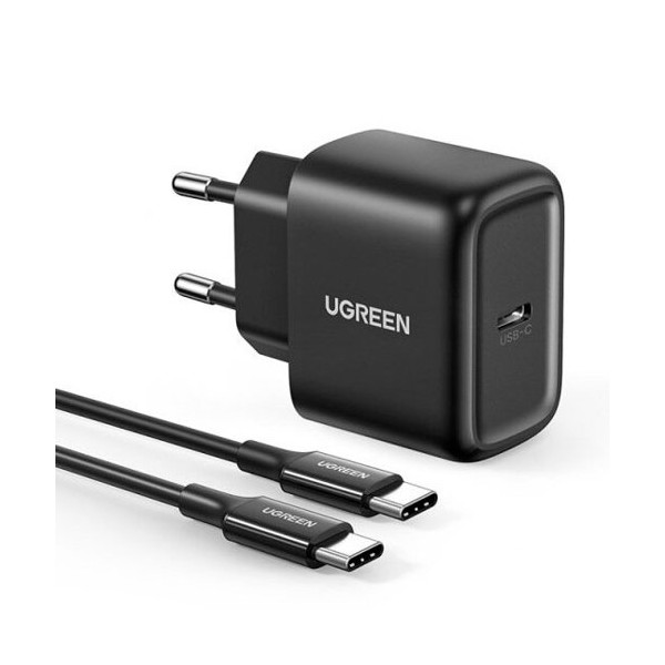 Ugreen φορτιστής USB Type C 25W Power Delivery + καλώδιο USB Type C 2m μαύρο (50581) Ο παλιός σας φορτιστής είναι αναποτελεσματικός για εσάς; Αντικαταστήστε το με μια νέα συσκευή που θα φορτίζει το τηλέφωνο ή το tablet σας έως και τρεις φορές πιο γρήγορα.